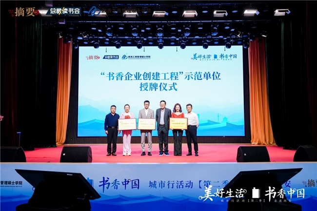 本次活动还举行了总裁读书会与凤凰网陕西频道的战略签约仪式,总裁读书会创始人、总裁读书会全国领读者联盟理事长刘世英,凤凰网陕西 CEO 张怀宇,共同签署了这份承载着文化使命与发展愿景的战略合作协议。活动还为多家“书香企业创建工程”示范单位代表举行了授牌仪式。