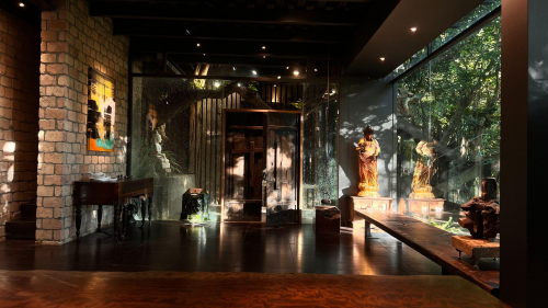 杨占的“神兽系列”雕塑展示于中国台湾阳明山“蕨知苑”艺术空间,与周边的林木光影形成和谐对话,展现了艺术与自然融合的独特魅力。(图:杨占)