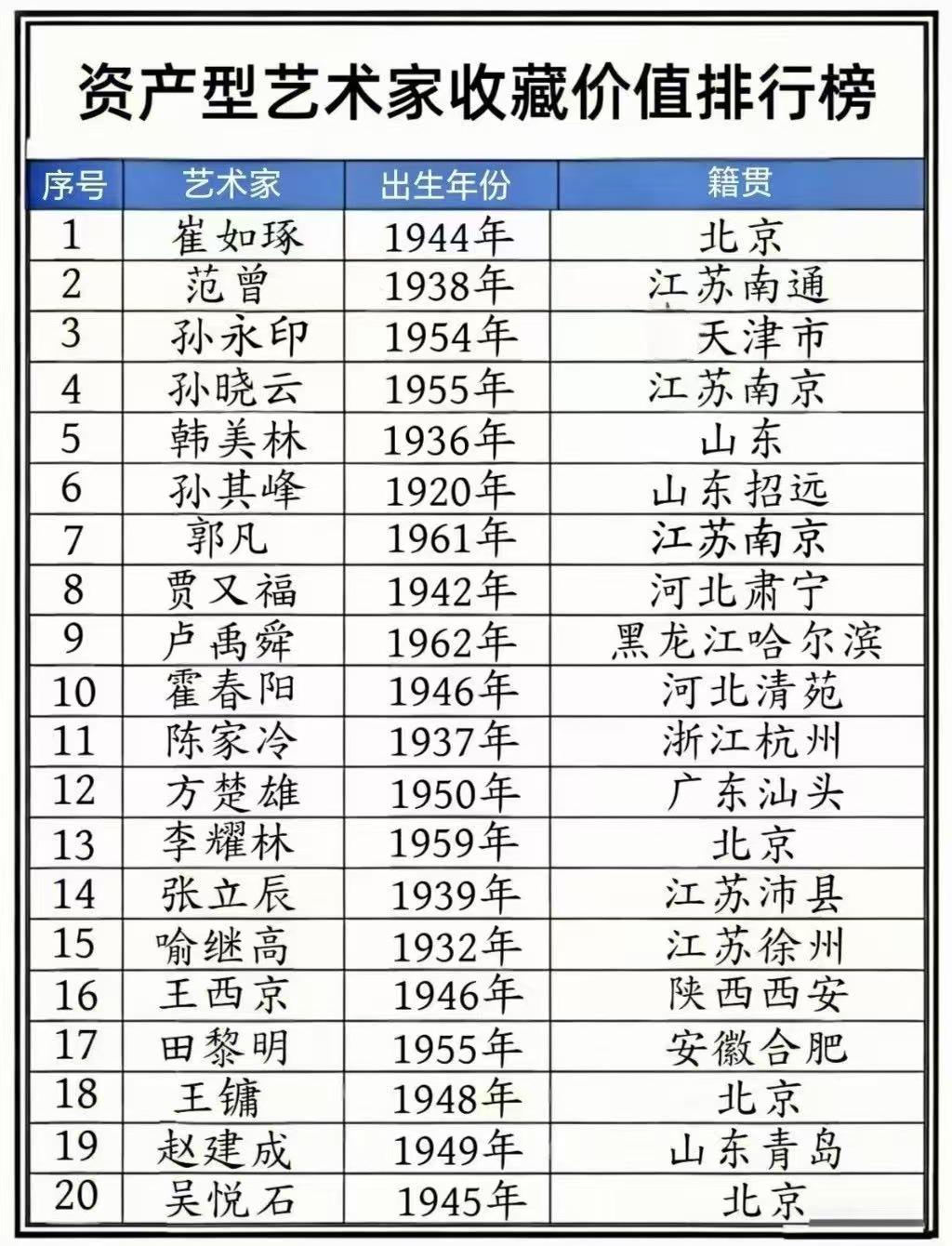 为此,隆重推出 【资产型艺术家排行榜】 与 【收藏投资排行榜】。