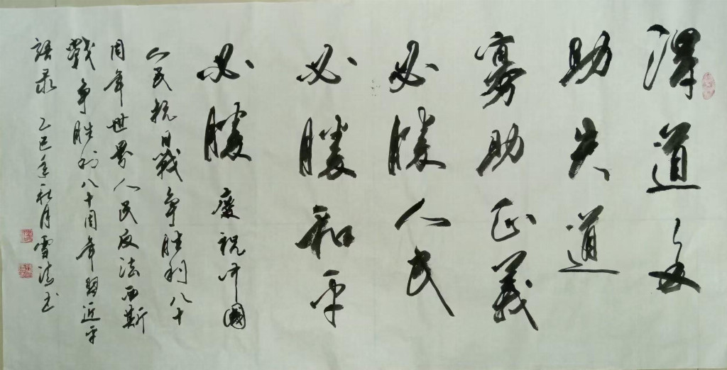 孙雪清,笔名:苏人,男,1949年10月出生,中共党员,毕业于第四军医大学航空医学系。原在空军某疗养院工作,后调入解放军总装备部无锡某研究所工作,现已退休。自幼喜爱书法,同时受父辈的熏陶,小学时的书法作业常在全校展览。大学时就参加全校书画展。大学毕业后工作之余不断钻研书法,访名师,求提高。1985-1987年曾参加上海书法专修学校中、高级班培训两年(函授)。1987年后参加全国性书画展多次,曾获国际金奖、银奖、铜奖、优秀奖多次。92、93年应邀参加日本大阪、东京都、神户、姬路等八城市个人书画巡回展,获得成功。并由日中文化友协会长福田一郎亲自签发《个人书画巡回展证书》及《荣誉证书》。