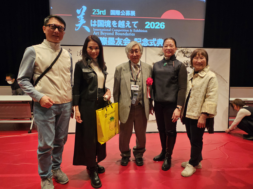 由亚洲国际艺术协会理事长吴欐樱领衔,偕同台湾优秀艺术家王门傑、陈孟环、吴秀音、赵玮娟获邀参展国际墨友会筹办的第 23 届「跨越国界之美 2026」(Art Beyond Boundaries 2026)国际公募展。这场盛会于 1 月 31 日在东京国立新美术馆举办开幕暨颁奖仪式,吴欐樱与王门傑亲自出席,以水墨创作与日本艺坛展开深刻的文化交流,成为现场瞩目焦点。