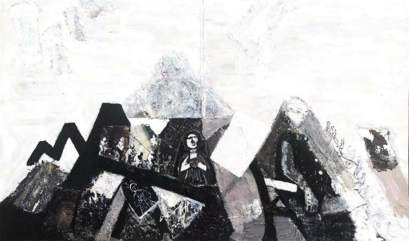 陈燕财 综合材料绘画《峦影佛心》 2020年 200x100cm