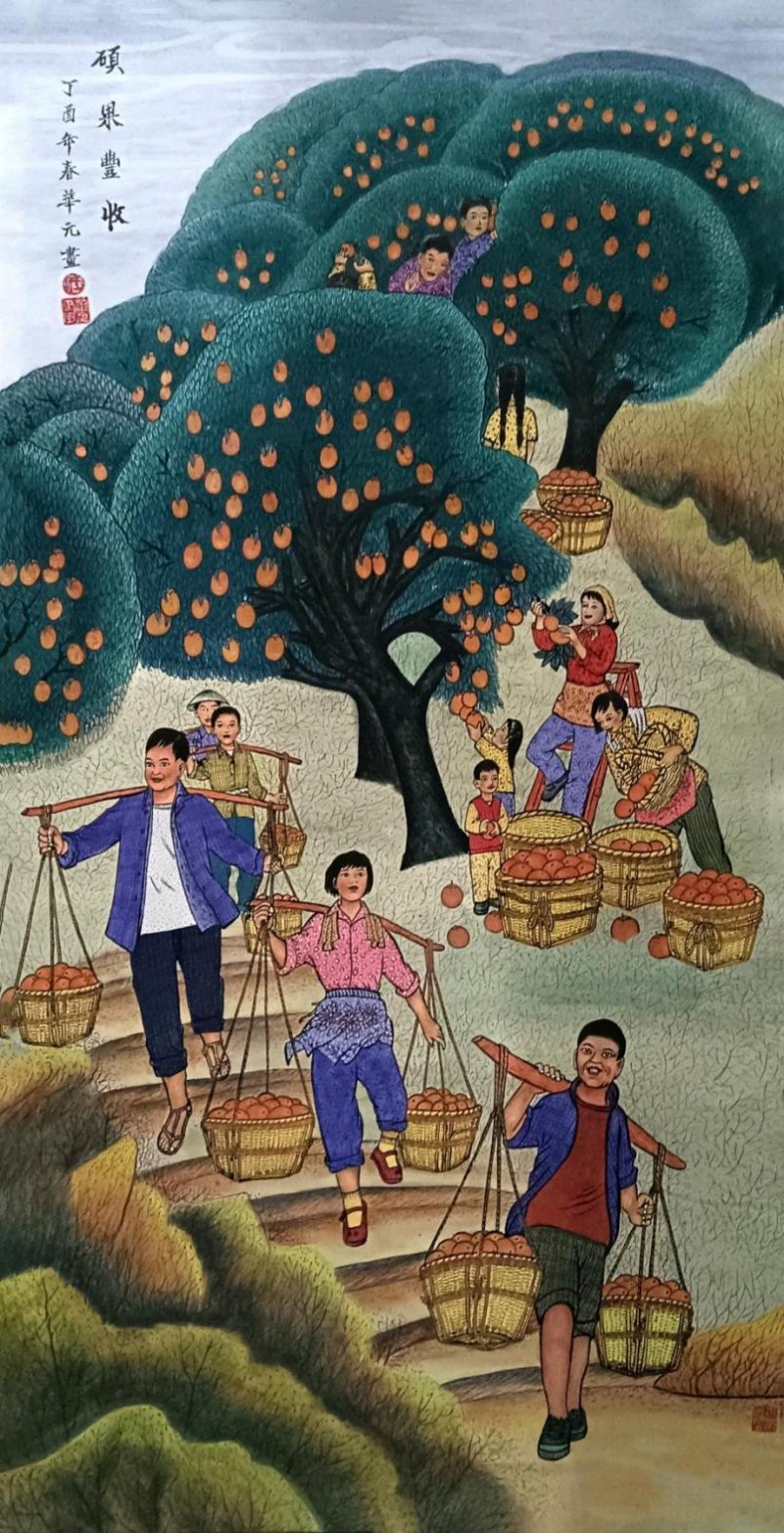 作者:王华元,中国画《硕果丰收》尺寸140×70cm